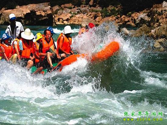 茅巖河漂流段是大庸城西20公里青魚(yú)潭往北一段。茅巖河雖灘險(xiǎn)流急,但河床坡度小,水位落差不大;險(xiǎn)灘較短(一般僅20余米長(zhǎng)),而險(xiǎn)灘與險(xiǎn)灘間的距離卻較長(zhǎng)(一般均逾千米),故浪濤適中,漂流有驚無(wú)險(xiǎn)。茅巖河主要景點(diǎn)有:血門溝、洞子坊、茅巖灘、夾兒溝、溫塘溫泉、麻陽(yáng)古渡、茅巖河峽、水洞子瀑布等。沿河兩岸青山綠水、風(fēng)光如畫(huà),故又稱“百里畫(huà)廊”。